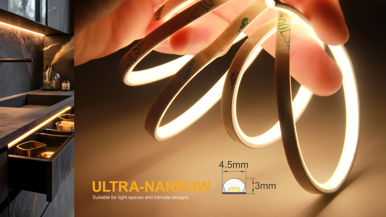 The 6394-Mini series is an ultra-slim LED Strip series, designed to expand your creative potential. At a mere 4.5mm wide, this slim profile allows for invisible integration into trimless details, tight coves, and confined spaces. Combine this seamless light with exceptional color fidelity (+90 CRI) and 2-inch cutability for the ultimate tool in precision architectural accent lighting.